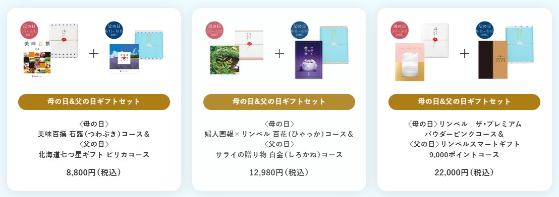慌ただしくなりがちな、ギフトの手配が一度のご注文で完了する母の日・父の日のセットギフトが便利!